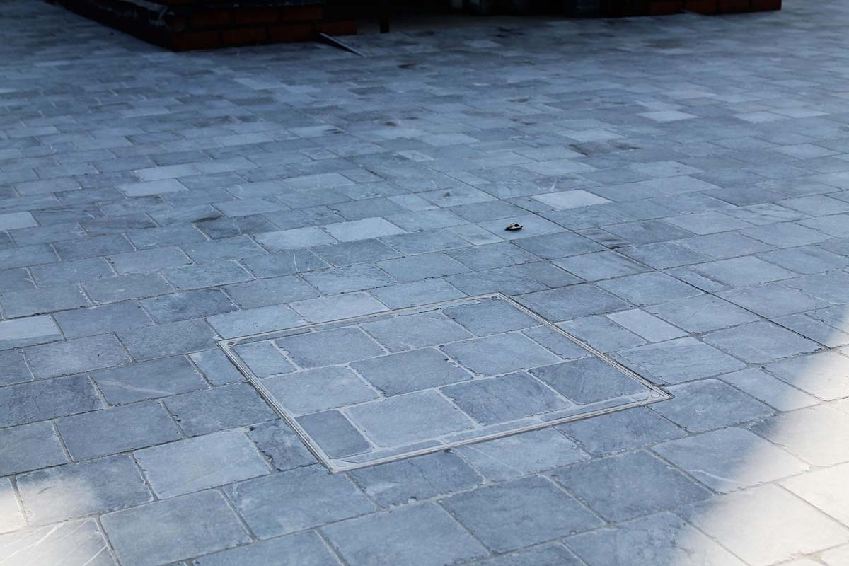 De totaaloppervlakte van 360m² werd volledig afgegraven, waarna een bedding werd voorzien van 15cm stabilisé.