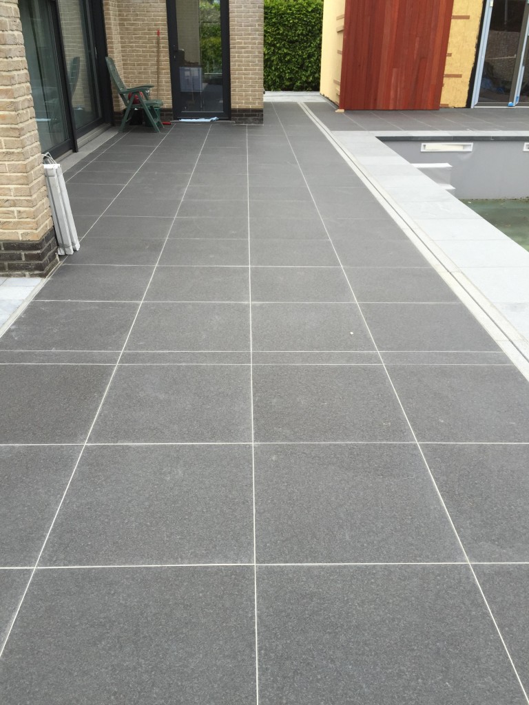 - volkeramische vloertegels van 60x60x2 (basalt look)