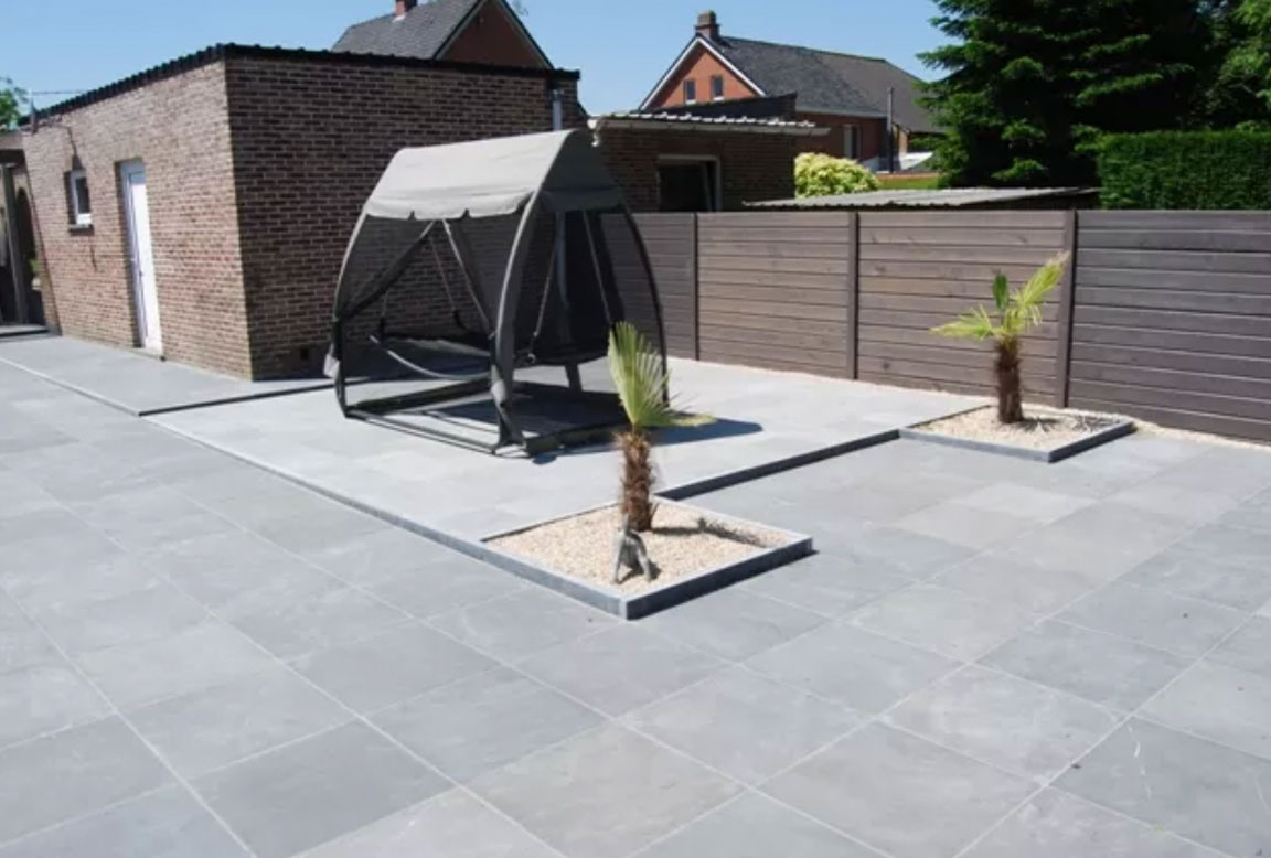 - Viëtnamese blauwsteen 40x40x2.5 (getrommeld), 60x60x3 (verzoet)
